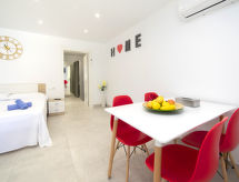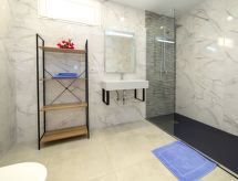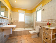 "Verano", 7-værelse-villa 327 m2 på 3 etager. Rummelig og lys, komfortabelt og pæn indrettet: stue/spisestue med digital TV. Udgang til terrasse. 1 værelse med 1 fransk seng (150 cm, længde 200 cm), klimaanlæg, ventilator og varmluft opvarming. Udgang til terrasse. 1 værelse med 2 senge (90 cm, længde 190 cm), klimaanlæg og varmluft opvarming. Åbent køkken (ovn, opvaskemaskine, 4 keramiske kogeplader, Brødrister, kedel, mikroovn, elektrisk kaffemaskine). Bad/WC. Nederste etage: (udvendig trappe) stue/soveværelse med 1 fransk seng (150 cm, længde 190 cm), klimaanlæg og varmluft opvarming. Udgang til terrasse, til pool. (udvendig trappe) 1 værelse med 2 senge (90 cm, længde 190 cm), klimaanlæg og varmluft opvarming. Udgang til terrasse, til pool. (udvendig trappe) Studio med omklædningsrum med 1 fransk seng (150 cm, længde 200 cm), køkkenblok, brus/WC, klimaanlæg og varmluft opvarming. Udgang til terrasse, til pool. Brus/WC. Tagetage: 1 værelse med 1 fransk seng (150 cm, længde 190 cm), bad/WC, klimaanlæg, ventilator og varmluft opvarming. Udgang til terrasse. Stor terrasse. Havemøbler, grill, liggestole. Udsigt over dalen og byen. Til benyttelse: vaskemaskine, tørretumbler, strygejern højstol, barneseng til 2 år, hårtørrer. Internet (trådløs LAN [WLAN], gratis). Parkeringsplads. Bemærk venligst: lejlighed ligger på gårdside. VT-490446-A Med indhegnet grund. Et sted for afslappende ferie til solbadning og læsning i haven. Velegnet til grill. Der er en privat pool. Det har en internetforbindelse. Det har en tørretumbler.- Aktiviteter i nærheden