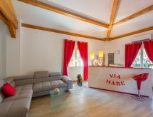 "Via Mare (PVC513)", 2-værelse-lejlighed 42 m2. Pæn og moderne indrettet: stue med 1 dobbelt sovesofa (160 cm), spisebord og sat-TV. 1 værelse med 1 fransk seng (160 cm). Åbent køkken (ovn, opvaskemaskine, 2 keramiske kogeplader, Brødrister, mikroovn, elektrisk kaffemaskine). Brus/WC. Opvarming, klimaanlæg. Terrasse. Havemøbler, grill. Flotte panoramaudsigt over havet. Til benyttelse: pengeskab. Bemærk venligst: velegnet for familier. Ikke-ryger lejlighed. Brandalarm. Residence. En tilhørende idyllisk have inviterer dig til at sidde i solen. For jeres velvære kan du nyde boblebadet i feriesæsonen. Tilbyder spektakulær udsigt over havet. Velegnet til grillning. Der er en opvaskemaskine til rådighed. Der er en pool. En tørretumbler han tilgængelig. Ved rengøring.- Karakteristika for boligen