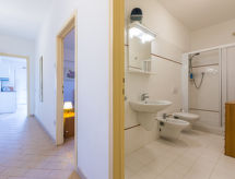 Moderne, smuk 3-familiehus på 2 etager, omgivet af træer. I bydelen Montaleo, 2 km fra bymidten af Casale Marittimo, 9 km fra centrum af Cecina, rolig beliggenhed boligområde, 11 km fra havet. Til alene benyttelse: grund 3'500 m2, stor, velplejet have (indhegnet) træer, pool (4 x 9 m, 100 - 220 cm dyb, Sæsonbestemt tilgængelighed: 01.Maj. - 15.Okt.) med salt-elektrolys. Brus/toilet i poolområdet, Underholdning af poolen af ejeren/gartneren. I huset: vaskemaskine. Parkeringsplads (for 4 biler). Fødevarebutik 2.5 km, supermarked 7 km, restaurant 2 km, bageri 2.5 km, sandstrand "Marina di Cecina" 11 km, varmtvandsbad "Calidario" 35 km. Marina 13 km. Nærliggende attraktioner: Bolgheri 12 km, Pisa 65 km, Lucca 90 km, Firenze 120 km. Bemærk venligst: velegnet for familier. Ejeren accepterer ikke nogen ungdomsgrupper.Interior