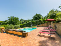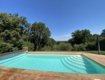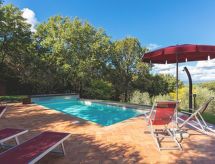 "Villa Le Querce", 10-værelse-hus 220 m2. Pæn og smagfuld indrettet: stue/soveværelse med 1 dobbelt sovesofa og åben kamin. Udgang til loggia. 1 værelse med 1 dobbeltseng (1 x 200 cm, længde 200 cm). 1 værelse med 1 seng og 1 dobbeltseng. Køkken/alrum (ovn, opvaskemaskine, Gaskomfur, 4 gasblus, Brødrister, kedel, elektrisk kaffemaskine) med åben kamin og spisebord. Udgang til veranda. Brus/bidet/WC. El-opvarming, gas-opvarming, klimaanlæg (ekstra). Nederste etage: stue/soveværelse med 1 dobbelt sovesofa. Stue/soveværelse med 1 dobbelt sovesofa. 2 dobbeltværelse. 2 værelse, alle værelser med 1 seng og 2 x 1 køjesenge. Kogeniche (ovn, Gaskomfur, 4 gasblus, Brødrister, kedel, elektrisk kaffemaskine) med spisebord. 2 brus/bidet/WC. Gas-opvarming. Stor terrasse 40 m2, havesiddeplads. Havemøbler, grill, liggestole. Flotte panoramaudsigt over landskabet. Til benyttelse: vaskemaskine, højstol, barneseng, hårtørrer. Internet (trådløs LAN [WLAN], gratis). Bemærk venligst: velegnet for familier. Ikke-ryger lejlighed. Maksimum 3 husdyr/hunde tilladt. Ingen intern forbindelsesdør mellem de adskilte boliger. Ingen intern dør mellem etager. Især efter en begivenhedsrig ferie hjælper et brusebad med at opdatere. En rigtig god fornøjelse takket være den tilgængelige bruser. I den idylliske have kan du nyde rekreation som en naturoplevelse. Kom ind og føl den forfriskende brise af klimaanlægget. En veranda er tilgængelig. Velegnet til grill. En pool er tilgængelig. Det har en privat pool. Der er en komfur.- Faciliteter