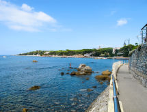 Residens "Villa Casa Marina". 12 lejligheder i bygningen. 1.2 km fra bymidten af Castiglioncello, 6.5 km fra centrum af Vada, 23 km fra bymidten af Livorno, boligområde, 90 m fra havet, direkte adgang til stranden. Til medbenyttelse: grund 3'000 m2 (indhegnet), park, græsmark. Terrasse, havemøbler. I huset: elevator, solterrasse. Trappe til huset. Parkeringsplads på grunden, fælles garage. Indkøbsforretning 270 m, supermarked 1 km, busstoppested 200 m, togstation "Castiglioncello" 950 m, sandstrand 500 m, klippestrand 200 m. Marina 1.2 km. Castiglioncello tilbyder ideelle betingelser for surfing og surfing. Især vidunderlige bølger, der giver både begyndere og avancerede en masse glæde.Interior