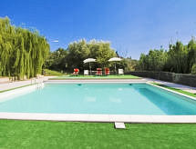 "Villa Sofia", 5-værelse-hus 100 m2 på 2 etager. Komfortabelt indrettet: stue/spisestue med udestue med TV. Udgang til have, til veranda. 1 værelse med 1 seng. 1 dobbeltværelse. Kogeniche (5 kogeplader, ovn, opvaskemaskine, mikroovn). Brus/bidet/WC. Overetage: 1 dobbeltværelse. Udgang til terrasse. 1 mindre værelse med 2 senge. Brus/bidet/WC. Intet opvarmningsalternativ. Havesiddeplads, have. Grill. Udsigt over svimmingpoolen. Til benyttelse: vaskemaskine. Internet (trådløs LAN [WLAN], ekstra). Parkeringsplads. 1 husdyr/hund tilladt. Er en regelmæssig bruserritual fast forankret i den daglige rutine? Vi kan gøre det, fordi et brusebad er til rådighed. Dette er en ferie, hvor din hund er velkommen. Huset er også udstyret med en parkeringsplads. En pool er tilgængelig. Der er en privat pool.- Faciliteter