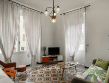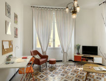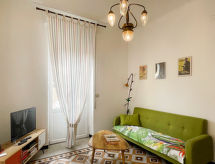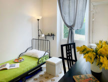 Schönes, historisches Haus auf 2 Stockwerken. Im Ortsteil Porto Maurizio, im Ortszentrum von Imperia, belebte, sonnige Lage, im Herzen der Stadt, 200 m vom Meer, 200 m vom Strand, Strasse zu überqueren. Zur Alleinbenutzung: kleiner, gepflegter Terrassengarten, 70 m2 (eingezäunt), öffentliche Parkplätze auf der Strasse. Lebensmittelgeschäft 100 m, Restaurant 40 m, Bar 50 m, Bäckerei, Café 100 m, Bushaltestelle 50 m, Sandstrand "Borgo Marina" 200 m. Nahe gelegene Sehenswürdigkeiten: Altstadthügel Parasio 300 m, Yachthafen Imperia-Oneglia 5 km, Museo dell´ Olivo Carlo Carli 5 km.Interior