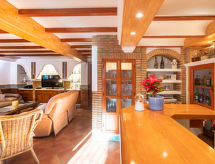 "Calle Acacias", 6-Zimmer-Haus 244 m2 auf 2 Stockwerken, Südlage. Geräumig, einfach eingerichtet: Wohn-/Esszimmer mit Bar und TV. Ausgang zum Gartensitzplatz. Offene Küche (Backofen, Geschirrspüler, 4 Glaskeramikherd Platten, Toaster, Wasserkocher, Mikrowelle, Tiefkühler). Ausgang zum Gartensitzplatz. Dusche/WC. Obergeschoss: 1 Zimmer mit 1 Bett (150 cm, Länge 200 cm) mit 1 Bett (160 cm, Länge 200 cm). 1 Zimmer mit 1 Bett (150 cm, Länge 200 cm). 1 Zimmer mit 1 Bett (160 cm, Länge 200 cm), Bad/WC. 1 Zimmer mit 1 Bett (140 cm, Länge 200 cm). 1 Zimmer mit 1 Bett (150 cm, Länge 200 cm). Bad/Bidet/WC, Dusche/WC. Grosser Gartensitzplatz. Terrassenmöbel, Gartengrill. Zur Verfügung: Waschmaschine, Wäschetrockner, Bügeleisen, Babybett (extra), Haartrockner. Internet (Wireless LAN, gratis). Parkplatz (2 Autos). Bitte beachten: geeignet für Familien. TV nur ES. CTC-2021002744 Die Klimaanlage sorgt für eine gute Raumtemperierung. Denn der Wohlfühlfaktor spielt eine wichtige Rolle und ist uns wichtig. Das Haus ist auch mit einer Veranda ausgestattet. Geeignet zum Grillen. Es hat ein privater Pool. Informieren Sie sich im über den vorhandenen TV Apparat. Ob lokale Neuigkeiten oder internationale Nachrichten, mit dem Fernsehen sind sie stehts gut informiert. Unabhängiger sind Sie mit der eigens vorhandenen Waschmaschine. Es gibt ein Wäschetrockner.- Aktivitäten in der Nähe