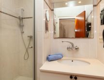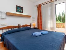 "Adelfa apt 6", 3-Zimmer-Wohnung 50 m2 im 1. Stock. Zweckmässig eingerichtet: Wohn-/Esszimmer mit Sat-TV und Klimaanlage. Ausgang zur Terrasse. 1 Zimmer mit 1 franz. Bett (180 cm, Länge 190 cm), Klimaanlage. 1 Zimmer mit 1 Bett (90 cm, Länge 190 cm), 1 x 2 Etagenbetten (90 cm, Länge 190 cm), Klimaanlage. Küche (1 Glaskeramikherd Platte, Mikrowelle, Tiefkühler, elektrische Kaffeemaschine). Dusche, sep. WC. Klimaanlage, Boiler (50 Liter). Terrasse überdacht. Terrassenmöbel, Gartengrill. Zur Verfügung: Waschmaschine, Safe. Internet (Wireless LAN, gratis). Parkplatz (überdacht). Bitte beachten: TV nur FR, DE. HUTG002989 Mit eingezäuntem Grundstück. Das Haus ist auch mit einem Babybett ausgestattet.- Ausstattung