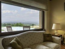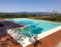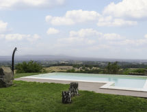 6-Zimmer-Villa 280 m2. Geräumig, komfortabel und stilvoll eingerichtet: grosses Wohnzimmer mit offenem Kamin (nur Deko), Sat-TV (Flachbildschirm). Ausgang zum Garten. Esszimmer. 1 Doppelzimmer mit Dusche/Bidet/WC. 1 Doppelzimmer mit Dusche/Bidet/WC. 1 Doppelzimmer mit Bad/Dusche/Bidet/WC und Klimaanlage. Ausgang zum Garten. 1 Zimmer mit 2 Betten. Ausgang zum Garten. Grosse Küche (5 Kochplatten, Backofen, Geschirrspüler, Toaster, Wasserkocher, Mikrowelle, Tiefkühler, elektrische Kaffeemaschine) mit Esstisch. Ausgang zum Garten. Bad. G-Heizung. Sehr schöne Panoramasicht auf das Tal. Zur Verfügung: Waschmaschine, Babybett. Internet (Wireless LAN, gratis). 1 Haustier/Hund erlaubt. Das Grundstück ist komplett eingezäunt. Auch wenn es in der Nacht noch so heiss bleibt, ist es schön, kann man die Klimaanlage einschalten und in einem angenehm temperierten Raumklima schlafen. Ein privater Pool ist verfügbar.- Charakteristik des Mietobjekts