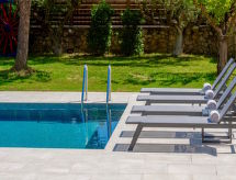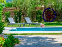 "Agricola", 7-Zimmer-Villa 220 m2 auf 2 Stockwerken. Modern und gemütlich eingerichtet: Wohn-/Esszimmer mit Sat-TV (Flachbildschirm), Klimaanlage. Ausgang zum Garten, zur Terrasse, zum Schwimmbad. 2 grosse Doppelzimmer, jedes Zimmer mit 1 Doppelbett, Bad/Dusche/WC und Sat-TV (Flachbildschirm), Klimaanlage. Ausgang zum Garten. 1 grosses Doppelzimmer mit 1 Doppelbett, Bad/Dusche/WC, Sat-TV und Klimaanlage. Grosse Küche (Geschirrspüler, 4 Glaskeramikherd Platten, Toaster, Wasserkocher, Mikrowelle, elektrische Kaffeemaschine) mit Esstisch. Ausgang zum Garten. Obergeschoss: (Aussentreppe) grosses Wohnzimmer mit 1 Diwanbett und Sat-TV (Flachbildschirm), Klimaanlage. Ausgang zum Balkon. 1 grosses Doppelzimmer mit 1 Doppelbett und Sat-TV (Flachbildschirm), Klimaanlage. Ausgang zum Balkon. 1 grosses Doppelzimmer mit 2 Betten und Sat-TV (Flachbildschirm), Klimaanlage. Grosse Küche (Backofen, 4 Glaskeramikherd Platten, elektrische Kaffeemaschine) mit Esstisch. Ausgang zum Balkon. Bad/WC. Terrassenmöbel, Gartengrill. Schöne Sicht auf die Berge, das Schwimmbad, den Garten und die Landschaft. Zur Verfügung: Waschmaschine, Safe, Bügeleisen, Haartrockner. Internet (Wireless LAN, gratis). 1056604 Mit eingezäuntem Grundstück. Mit Reinigung.- Aktivitäten in der Nähe