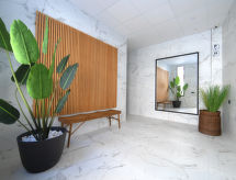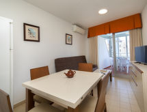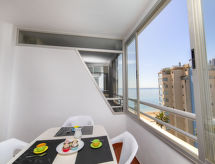 "Aguamarina", 2-Zimmer-Wohnung 41 m2 im 9. Stock. Einfach und zweckmässig eingerichtet: Wohn-/Esszimmer mit 1 Diwanbett, Digital-TV, Klimaanlage und Warmluftheizung. Ausgang zur Veranda. 1 Zimmer mit 1 franz. Bett (150 cm, Länge 190 cm). Kochnische (4 Kochplatten, Backofen, Toaster, Wasserkocher, Mikrowelle, elektrische Kaffeemaschine). Dusche/WC. E-Heizung. Kleine Terrasse 10 m2. Terrassenmöbel. Seitliche Sicht auf das Meer. Zur Verfügung: Waschmaschine, Bügeleisen, Haartrockner. Internet (Wireless LAN, gratis). Geeignet für Familien. AT-440238-A Unterkunft mit angeschlossenem Restaurant. Das Ferienobjekt verfügt über einen Personenaufzug. Die drückende Hitze kann Körper und Gemüt stark belasten. Deshalb sind die Räumlichkeiten mit Klimaanlagen ausgestattet. Es gibt ein Internetanschluss.- Ausstattung