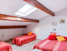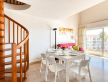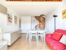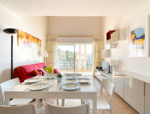 3-Zimmer-Wohnung 52 m2 auf 2 Stockwerken im 4. Stock. Zweckmässig und schön eingerichtet: Wohn-/Esszimmer mit TV. Ausgang zur Terrasse. 1 Zimmer mit 1 franz. Bett (160 cm, Länge 200 cm). Ausgang zur Terrasse. Küche (Backofen, 4 Glaskeramikherd Platten, Toaster, Wasserkocher, Mikrowelle, Tiefkühler, elektrische Kaffeemaschine). Bad, sep. WC. Obergeschoss: abgeschrägt 26 m2, 1 Zimmer mit 4 Betten (90 cm). Terrasse 12 m2. Liegestühle. Sicht auf das Meer und den Hafen. Zur Verfügung: Waschmaschine, Bügeleisen, Haartrockner. Garage Nr. 22 (NIV. -1), Höhe 185 cm, Breite 205 cm. Bitte beachten: Parkplatz nur für kleine Wagen. Rauchmelder. Eine Badewanne ist verfügbar. Das Ferienobjekt verfügt über einen Personenaufzug. Bietet wunderschöne Aussicht aufs Meer. Eine Waschmaschine ist zum gebrauch vorhanden.- Ausstattung