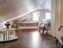 140 km nordöstlich von Oulu, im touristischen Zentrum von Iso-Syöte, am Fuss des Fjells gelegen, in der Nähe des Bereichs mit Dienstleistungen. Doppelhaus, Baujahr 2012. Wohnküche, Schlafzimmer mit Doppelbett. Sauna und Bad/WC. Dachboden mit 2 Schlafsofas, eins davon in der Nische (keine Tür, aber Vorhang). Überdachte Terrasse, Abstellraum. Grillbereich zur Mitbenutzung mit der Nachbarwohnung (13775). Aihki A ist eine gemütliche Ferienwohnung, die sich am Fusse des Hügels Iso-Syöte befindet. Z.B. Liftstation und Restaurant sind in unmittelbarer Nähe (500 m auf dem Weg, 800 m mit dem Auto). Syöte Nationalpark und Naturzentrum 2.5 km. See Luppovesi, mit öffentlichem Strand 1.4 km. Skigebiet Pikku-Syöte 4.5 km. Eine Feuerstelle ist verfügbar. Das Haus ist auch mit einer Sauna ausgestattet.- Ausstattung