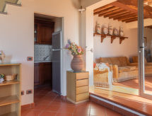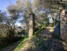 "Al Pozzo", 3-Zimmer-Villa 140 m2 auf 2 Stockwerken. Hell, komfortabel und rustikal eingerichtet: Eingang mit 1 Doppeldiwanbett und Klimaanlage. Offenes Wohn-/Esszimmer mit Essecke und Sat-TV. Ausgang zur Terrasse. Grosses Wohn-/Esszimmer mit offenem Kamin und Esstisch. Abgeschrägte, kleine Kochnische (4 Kochplatten, Backofen, Geschirrspüler, Mikrowelle, Tiefkühler). Dusche/Bidet/WC. Obergeschoss: 2 Doppelzimmer, jedes Zimmer mit Klimaanlage. Ausgang zur Terrasse. Bad/Bidet/WC. 3 Terrassen, grosse Laube. Terrassenmöbel, Gartengrill. Fernsicht auf das Meer, das Tal und die Ortschaft. Zur Verfügung: Waschmaschine, Bügeleisen. Für Kleinkinder nicht geeignet. Mit eingezäuntem Grundstück. Das Haus ist auch mit einer Veranda ausgestattet.- Aktivitäten in der Nähe