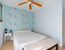 "Albatros", 3-Zimmer-Wohnung 78 m2 im 2. Stock. Zweckmässig und komfortabel eingerichtet: Wohn-/Esszimmer mit Esstisch, Digital-TV und Ventilator. 1 Zimmer mit 1 franz. Bett (150 cm, Länge 200 cm), Ventilator mit 1 franz. Bett (135 cm, Länge 190 cm), Ventilator. Küche (4 Glaskeramikherd Platten, Toaster, Mikrowelle, elektrische Kaffeemaschine). Dusche/WC. Keine Heizmöglichkeit. Wintergarten. Zur Verfügung: Waschmaschine, Bügeleisen, Kinderhochstuhl, Babybett bis 2 Jahre, Haartrockner. Internet (Wireless LAN, gratis). Parkplatz beim Haus. Bitte beachten: geeignet für Familien. Nichtraucher-Unterkunft. 1 Haustier/Hund erlaubt. CTC-2022122876 Das Haus ist auch mit einer Veranda ausgestattet. Ein Kinderbecken ist verfügbar.- Ausstattung