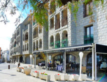 4-Zimmer-Wohnung 100 m2 im 1. Stock. Komfortabel und gemütlich eingerichtet: Eingang. Wohn-/Esszimmer mit Kabel-TV. Ausgang zur Veranda. 1 Zimmer mit 1 franz. Bett (150 cm). 1 Zimmer, ohne Schrank mit 1 Ausziehbett (2 Pers. 2 x 80 cm, Länge 180 cm). 1 Zimmer mit 2 Betten (80 cm). (Backofen, Geschirrspüler, 1 Glaskeramikherd Platte, Mikrowelle) mit Esstisch. Dusche/WC, sep. WC. Keine Heizmöglichkeit. Balkonmöbel. Sicht auf das Meer und die Berge. Zur Verfügung: Waschmaschine, Wäschetrockner. Internet (Wireless LAN, gratis). Parkplatz Nr. 18 (überdacht). Bitte beachten: Nichtraucher-Unterkunft. HUTG045319 In Gehweite wird ein Gastlokal betreiben. Sie gelangen mit dem Aufzug zur Etage der Wohnung. Gewährt spektakulärer Aussicht auf das Meer. Dank der Waschmaschine die Sie vorfinden, sind weniger Kleider zum mitschleppen. Es hat ein Wäschetrockner.- Ausstattung
