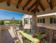 Skitača 20 km von Rabac: Schöne, komfortable Villa "Albina", auf 2 Stockwerken, umgeben von Bäumen. Im Weiler Skitača, 15 km vom Zentrum von Labin, ruhige, sonnige, erhöhte Lage, 5 km vom Meer, 5 km vom Strand, im Grünen. Zur Alleinbenutzung: gepflegter Garten 400 m2 mit Rasen, Schwimmbad eckig (10 x 5 m, 90 - 145 cm tief, saisonale Verfügbarkeit: 04.Mai. - 14.Sep.) mit Innentreppe. Terrasse, Gartenmöbel, Grill. Im Hause: Internetzugang, Klimaanlage, Waschmaschine. Zufahrt (100 m Naturweg). Parkplatz beim Haus auf dem Grundstück. Einkaufsgeschäft 5 km, Restaurant 5 km, Kieselstrand 5 km, Felsstrand 5 km.Interior