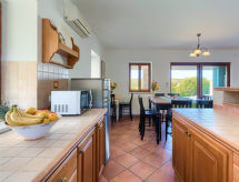 5-Zimmer-Villa 220 m2 auf 2 Stockwerken. Schön und geschmackvoll eingerichtet: grosses Wohn-/Esszimmer mit offenem Kamin, Sat-TV, DVD und Klimaanlage. Ausgang zur Terrasse. 1 Zimmer mit 2 Betten (80 cm, Länge 190 cm). Offene Küche (4 Kochplatten, Backofen, Geschirrspüler, Mikrowelle, Tiefkühler). Sep. WC. Obergeschoss: 2 Zimmer, jedes Zimmer mit 1 franz. Bett (160 cm, Länge 190 cm), Dusche/Bidet/WC und Klimaanlage. Ausgang zur Terrasse. 1 Zimmer mit 2 Betten (80 cm, Länge 190 cm), Klimaanlage. Bad/Bidet/WC. Grosse Terrasse 40 m2, überdacht, 2 kleine Terrassen. Terrassenmöbel, Liegestühle. Sicht auf das Meer. Zur Verfügung: Babybett. Internet (Wireless LAN, gratis). Die Entspannung und das Lebensgefühl im Garten sind im Urlaub unverzichtbar. Bietet wunderschöne Aussicht aufs Meer. Geeignet für ein Barbecue. Ein privater Pool ist verfügbar. Eine Waschmaschine ist zum gebrauch vorhanden. Ein DVD Spieler ist verfügbar.- Aktivitäten in der Nähe