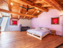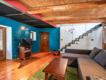 "Alexandra", 2-Zimmer-Haus 85 m2 auf 3 Stockwerken. Zweckmässig und gemütlich eingerichtet: Wohnküche (4 Kochplatten, Geschirrspüler, elektrische Kaffeemaschine) mit Esstisch. Ausgang zum Garten. Obergeschoss: Wohn-/Schlafzimmer mit 1 Doppeldiwanbett, Sat-TV und Heizofen. Ausgang zum Balkon. Dusche/WC. Heizung nicht in allen Räumen. 2. Obergeschoss: (geländerlose Treppe) 1 abgeschrägtes Zimmer mit 1 Doppelbett. Ausgang zum Balkon. 2 Balkone, Terrasse, Garten. Terrassenmöbel, Gartengrill, Liegestühle (2), Sitzplatz. Zur Verfügung: Waschmaschine, Babybett, Holz (extra). Internet (Wireless LAN). Bitte beachten: Nichtraucher-Haus. CIR:00418700003 Bitte geniessen Sie ihren Tabak nicht im Ferienobjekt. Es verstösst gegen die Hausordnung. Das Haus ist auch mit einem Internetanschluss ausgestattet.- Ausstattung