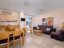 "Alondras", 3-Zimmer-Wohnung 80 m2. Geräumig und hell, schön und geschmackvoll eingerichtet: Wohn-/Esszimmer mit Digital-TV, Klimaanlage und Warmluftheizung. Ausgang zur Terrasse. 1 Zimmer mit 1 franz. Bett (160 cm, Länge 190 cm), Bad/WC, Klimaanlage und Warmluftheizung. Ausgang zur Terrasse. 1 Zimmer mit 2 Betten (90 cm, Länge 190 cm), Ventilator. Offene Küche (Backofen, Geschirrspüler, 4 Glaskeramikherd Platten, Toaster, Wasserkocher, Mikrowelle, Tiefkühler, elektrische Kaffeemaschine). Dusche/WC. Grosse Terrasse 70 m2, 2 grosse Terrassen 40 m2. Sehr schöne Sicht auf das Meer. Zur Verfügung: Waschmaschine, Bügeleisen, Kinderhochstuhl, Babybett, Haartrockner. Internet (Wireless LAN, gratis). Garage Nr. 14. Bitte beachten: TV nur ES. R000000001 Gewährt spektakulärer Aussicht auf das Meer. Es gibt ein Babybett. Es gibt ein überdachter Parkplatz. Das Haus ist auch mit einem Pool ausgestattet. Es hat ein Kinderbecken.- Aktivitäten in der Nähe