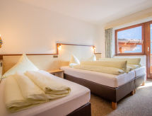 5-Zimmer-Wohnung 117 m2 im 1. Stock. Geräumig, geschmackvoll eingerichtet: 1 Doppelzimmer mit Kabel-TV (Flachbildschirm). 3 Zimmer, jedes Zimmer mit 1 Bett, 1 Doppelbett und Kabel-TV (Flachbildschirm). Wohn-/Esszimmer mit Esstisch und Sat-TV (Flachbildschirm). Offene Küche (Backofen, Geschirrspüler, 4 Glaskeramikherd Platten, Mikrowelle, elektrische Kaffeemaschine). 3 Duschen/WC, sep. WC, Doppelwaschbecken. Komfortable Einrichtung im Landhausstil. 2 Balkone. Herrliche Panoramasicht auf die Berge und das Tal. Zur Verfügung: Telefon, Safe, Haartrockner. Internet (Wireless LAN, gratis). Parkplatz (3 Autos). Bitte beachten: Nichtraucher-Unterkunft. Rauchmelder. Boxspringbetten und können wahlweise als Doppel- oder Einzelbetten genutzt werden. Bei Belegung mit weniger Personen als der maximalen Personenzahl stehen nicht alle Wohneinheiten zur Verfügung. Duschen ist belebend und eine Brause ist zugegen. Bei Fragen und Unklarheiten wenden Sie sich bequem an die Rezeption. Sie gelangen mit dem Aufzug zur Etage der Wohnung. Ein drahtloses lokales Netzwerk (WLAN) ist vorhanden.- Ausstattung