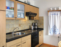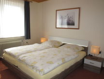 3-Zimmer-Wohnung 55 m2, im Erdgeschoss. Gemütlich und mit viel Holz eingerichtet: Wohn-/Esszimmer mit Sat-TV, Radio und CD. 1 Zimmer mit 1 Doppelbett. Durchgangszimmer mit 2 Betten. Offene Küche (Backofen, 4 Glaskeramikherd Platten, Toaster, Wasserkocher, elektrische Kaffeemaschine). Dusche/WC. Terrasse, Gartensitzplatz. Terrassenmöbel, Gartengrill, Liegestühle (2). Zur Verfügung: Kinderhochstuhl, Babybett. Internet (Wireless LAN, gratis). Bitte beachten: Nichtraucher-Unterkunft. Rauchmelder. Es gibt WLAN (Drahtloses lokales Netzwerk).- Ausstattung