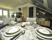 2-Zimmer-Wohnung 40 m2, im Dachgeschoss, Südwestlage. Abgeschrägtes Wohn-/Esszimmer 16 m2, Deckenhöhe 100 - 210 cm mit 1 Doppeldiwanbett (120 cm, Länge 190 cm), Sat-TV (Flachbildschirm), Klimaanlage. Ausgang zur Terrasse. 1 abgeschrägtes Zimmer, Deckenhöhe 100 - 210 cm mit 1 franz. Bett (140 cm, Länge 200 cm). Abgeschrägte, offene Küche (4 Kochplatten, Backofen, elektrische Kaffeemaschine), Deckenhöhe 100 - 210 cm. Dusche/WC. Terrasse 10 m2. Terrassenmöbel. Sicht auf das Meer. Zur Verfügung: Internet (Wireless LAN, gratis). Max. Belegung: 2 Erwachsene, 2 Kinder bis 12 Jahre. Überdies werden sie verwöhnt mit einem freien Blick auf das Meer. Es gibt ein Parkplatz. Informieren Sie sich im über den vorhandenen TV Apparat. Ob lokale Neuigkeiten oder internationale Nachrichten, mit dem Fernsehen sind sie stehts gut informiert.- Ausstattung