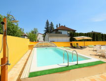 "Amarillo 3", 2-Zimmer-Wohnung 40 m2 im 2. Stock. Hell, komfortabel und modern eingerichtet: Wohn-/Esszimmer mit 1 Diwanbett, Schwedenofen, Sat-TV und Klimaanlage. Ausgang zum Balkon. 1 Doppelzimmer. Offene Küche (4 Kochplatten, Backofen, Mikrowelle, Tiefkühler) mit Essecke. Dusche/WC. Bodenheizung. Balkon. Balkonmöbel. Sicht auf die Ortschaft. Zur Verfügung: Kinderhochstuhl, Babybett bis 2 Jahre. EG20011550 Unser Garten lädt zum Verweilen ein. Auf dem Spielplatz können sich die Kinder austoben. Damit es auch im Sommer angenehm kühl bleibt, verfügt dieses Ferienobjekt über eine Klimaanlage. Geeignet für ein Barbecue. Ein Parkplatz ist verfügbar. Es gibt ein Pool.- Ausstattung