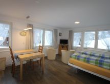 32 m2. Weitere Angaben des Anbieters: Herzlich Willkommen in Saas-Fee! Alle unsere Gäste fahren mit der SaastalCard im Sommer kostenlos in allen offenen Bergbahnen und den Postautos im ganzen Saastal (exkl. Metro - Alpin). Studio mit 2 Betten im Parterre mit Zugang zur Terrasse, 27m2, Wohn-/Schlafraum mit offener Küche und Essnische, Dusche/WC, Lift, gemütlich, heimelig und zweckmässig eingerichtet, in der Nähe der Skilifte und Bahnen. Kurtaxe Sommer (01.06. - 31.10.): CHF 7.- für Erwachsene/Tag, CHF 3.50 für Kinder (6 - 15.99 Jahre). Kurtaxe Winter (01.11. -31.05.): CHF 4.50 für Erwachsene/Tag, CHF 2.25 für Kinder (6 - 15.99 Jahre). Sie gelangen mit dem Aufzug zur Etage der Wohnung.- Charakteristik des Mietobjekts