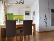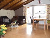 85 m2. Weitere Angaben des Anbieters: Das zentral gelegene Haus weist genügend Parkplatz auf. Die Liegewiese mit 100m2 Fläche und einem Grill ladet Sie zur gemütlichen Stunde ein. Um Ihren Wünschen gerecht zu werden, befindet sich im Haus eine Getränkeausgabe, Privatsauna, Waschmöglichkeit sowie Skiraum. 3 1/2-Zimmerwohnung (85 m2) mit 2 Schlafzimmer zu je zwei Betten und Balkon, Küche mit Esstisch, Kühlschrank (250l), Backofen, Kaffee-Kapselmaschine und Wasserkocher, Wohnzimmer mit Polstergruppe, Salontisch, Swisscom-TV, Radio mit CD-Player, Internetzugang WLAN, Tages-WC und Badezimmer mit Badewanne und Dusche getrennt. Zusatzbett: CHF 30.-- Kurtaxe Sommer (01.06. - 31.10.): CHF 7.- für Erwachsene/Tag, CHF 3.50 für Kinder (6 -15.99 Jahre). Kurtaxe Winter (01.11. -31.05): Kurtaxe Winter: CHF 4.50 für Erwachsene, CHF 2.25 für Kinder (6 -15.99 Jahre). Bett-, Küchen- und Badwäsche ist vorhanden. Es hat ein Babybett. Ihr Stoffwechsel kommt bei der Hitze in der vorhandenen Sauna auf Trab.- Charakteristik des Mietobjekts