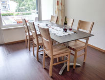 3-Zimmer-Wohnung 76 m2. Renoviert im Jahre 2015, schön und gemütlich eingerichtet: Wohn-/Esszimmer mit 2 Betten (90 cm, Länge 190 cm), Sat-TV und Radio. 1 Zimmer mit 1 Doppelbett. 1 Zimmer mit 2 Betten (90 cm, Länge 190 cm). Offene Küche (Backofen, Geschirrspüler, 4 Glaskeramikherd Platten, elektrische Kaffeemaschine, Kapseln für die Kaffeemaschine (Nespresso) extra, Fondue Set (Käse)) mit Esstisch, Sat-TV und Radio. Bad/WC. Bodenheizung. Balkon, Südlage. Terrassenmöbel. Sehr schöne Sicht auf die Berge. Zur Verfügung: Haartrockner. Internet (Wireless LAN, gratis). Parkplatz (1 Auto). Bitte beachten: Nichtraucher-Unterkunft. Maximal 1 Haustier/Hund erlaubt. Eine Badewanne ist vorhanden. Spielangebot für Kinder aller Altersklassen sind auf dem Areal vorhanden.- Ausstattung