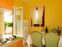 Mehrfamilienhaus "Ana". 5 km vom Zentrum von Rab, 800 m vom Zentrum von Barbat, 16 km vom Zentrum von Lopar, 20 m vom Meer, 50 m vom Strand. Zur Mitbenutzung: Grundstück 150 m2 mit Pflanzen und Bäumen. Aussendusche, Terrasse, Gartenmöbel, Grill. Im Hause: Internetzugang, Waschmaschine (zur Mitbenutzung, extra). Parkplatz beim Haus. Einkaufsgeschäft 300 m, Restaurant 1 km, Fähre 7 km, Kieselstrand 50 m. Bitte beachten: private Bootsanlegestelle (extra) auf Anfrage.Interior