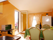 Mehrfamilienhaus "Ana". 5 km vom Zentrum von Rab, 800 m vom Zentrum von Barbat, 16 km vom Zentrum von Lopar, 20 m vom Meer, 50 m vom Strand. Zur Mitbenutzung: Grundstück 150 m2 mit Pflanzen und Bäumen. Aussendusche, Terrasse, Gartenmöbel, Grill. Im Hause: Internetzugang, Waschmaschine (zur Mitbenutzung, extra). Parkplatz beim Haus. Einkaufsgeschäft 300 m, Restaurant 1 km, Fähre 7 km, Kieselstrand 50 m. Bitte beachten: private Bootsanlegestelle (extra) auf Anfrage.Interior