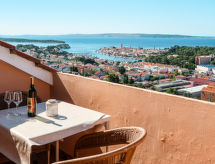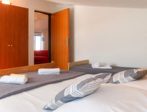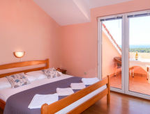 "Andrija (RAB314)", 3-Zimmer-Wohnung 90 m2, im Dachgeschoss. Abgeschrägtes Wohn-/Esszimmer mit 1 Doppeldiwanbett (160 cm, Länge 200 cm), Sat-TV und Klimaanlage. Ausgang zum Balkon. 1 abgeschrägtes Zimmer mit 1 Doppelbett (2 x 80 cm, Länge 190 cm). Ausgang zum Balkon. 1 abgeschrägtes Zimmer mit 1 Bett (80 cm, Länge 190 cm), 1 Doppelbett (2 x 80 cm, Länge 190 cm). Offene Küche (1 Kochplatte, Backofen, Toaster, Wasserkocher, Tiefkühler, elektrische Kaffeemaschine). Bad/WC. Heizung, Klimaanlage. Balkon 9 m2, Balkon. Balkonmöbel. Sicht auf das Meer. Zur Verfügung: Internet (Wireless LAN, gratis). Max. Belegung: 4 Erwachsene, 2 kinder bis 12 Jahre. Bietet wunderschöne Aussicht aufs Meer. Die drückende Hitze kann Körper und Gemüt stark belasten. Deshalb sind die Räumlichkeiten mit Klimaanlagen ausgestattet. Ein Babybett ist verfügbar.- Ausstattung
