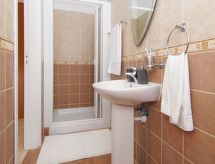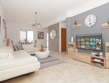 5-Zimmer- Haus (freistehend), für 8 Personen, 140 m2 auf 2 Stockwerken, komfortabel und modern eingerichtet. Wohn-/Esszimmer mit Regional-TV, Sat-TV und DVD. Rauchen nicht erlaubt. Internet (Wireless LAN [WLAN]). Schlafzimmer mit 2 Normalbetten. Schlafzimmer mit 2 Normalbetten. Schlafzimmer mit 2 Normalbetten. Schlafzimmer mit 1 Normalbett. Küche mit 4 - Platten Herd, Mikrowelle, Backofen, Esstisch, Geschirrspüler, Kühlschrank und Tiefkühler. Bad, Dusche/WC und sep. WC. Balkon, Terrasse, Gartensitzplatz, Terrassenmöbel. Weitere Ausstattung: Safe, Haartrockner, Bügeleisen, Waschmaschine. Das Haus ist auch mit einem Balkon ausgestattet. Es hat eine Veranda. Das Haus ist auch mit einem DVD Spieler ausgestattet. Es hat ein Ofen.- Charakteristik des Mietobjekts
