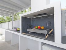 Luxuriöse Villa "yiasemina". Hausausstattung: Klimaanlage, Waschmaschine (zur Alleinbenutzung). Zufahrt & Parkmöglichkeiten: reservierter Parkplatz. Ganzjährig Zufahrt bis zum Haus möglich. Lage: von Ayia Napa, am Ortsrand. Umgebung des Hauses: Grundstück (zur Alleinbenutzung), Swimming Pool (zur Alleinbenutzung, Länge 8 m x Breite 4 m), Grill (zur Alleinbenutzung). Infrastruktur und Distanzen: Supermarkt 400 m, Sandstrand 3 km.Interior