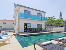 5-Zimmer- Haus (freistehend), für 8 Personen, 130 m2 auf 2 Stockwerken, modern eingerichtet. Wohn-/Esszimmer mit Regional-TV, Sat-TV und DVD. Rauchen nicht erlaubt. Internet (Wireless LAN [WLAN]). Schlafzimmer mit 1 Doppelbett. Schlafzimmer mit 1 Doppelbett. Schlafzimmer mit 2 Normalbetten. Schlafzimmer mit 2 Normalbetten. Küche mit 4 - Platten Herd, Mikrowelle, Backofen, Esstisch, Geschirrspüler, Kühlschrank und Tiefkühler. Bad, Dusche/WC und sep. WC. Balkon, Gartensitzplatz, Terrassenmöbel. Weitere Ausstattung: Safe, Haartrockner, Bügeleisen, Waschmaschine. 1 guest toilet. 1 family bathroom with bath tub. 1 en-suite bathroom with toilet and shower room. All bathrooms have with washing basins. Ein DVD Spieler ist vorhanden. Das Haus ist auch mit einem Ofen ausgestattet.- Charakteristik des Mietobjekts