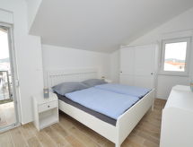 2-Zimmer-Wohnung 43 m2, im Dachgeschoss, Nordwestlage. Abgeschrägtes Wohn-/Esszimmer 20 m2, Deckenhöhe 175 - 300 cm mit 1 Doppeldiwanbett (150 cm, Länge 200 cm), Sat-TV (Flachbildschirm), Klimaanlage. Ausgang zur Terrasse. Abgeschrägt 1 Zimmer, Deckenhöhe 175 - 300 cm mit 1 Doppelbett (2 x 90 cm, Länge 190 cm), Klimaanlage. Ausgang zur Terrasse. Offene Küche (Geschirrspüler, 4 Glaskeramikherd Platten, Toaster, Wasserkocher, Mikrowelle, elektrische Kaffeemaschine). Dusche/WC. Terrasse 5 m2, überdacht. Terrassenmöbel. Sicht auf das Meer. Zur Verfügung: Waschmaschine, Wäschetrockner. Internet (Wireless LAN, gratis). Maximal 1 kleines Haustier/Hund erlaubt. Auch ihr Hund ist hier ein gern gesehen Feriengast, schließlich gehört er zur Familie. Aussicht auf das Meer und Lage sind traumhaft. Unabhängiger sind Sie mit der eigens vorhandenen Waschmaschine. Es gibt ein Internetanschluss. Das Haus ist auch mit einem drahtlosen lokalen Netzwerk (WLAN) ausgestattet.- Ausstattung