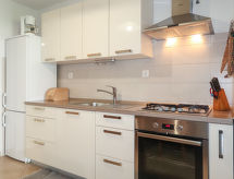 3-Zimmer-Reihenhaus 70 m2 auf 3 Stockwerken. Wohn-/Esszimmer mit 1 Diwanbett, Sat-TV und Klimaanlage. Offene Küche (1 Kochplatte, Backofen, 3 Flammen, Toaster, Wasserkocher, Tiefkühler, elektrische Kaffeemaschine). Dusche/WC. Obergeschoss: 1 Zimmer mit 1 Doppelbett (2 x 90 cm, Länge 200 cm), Bad/WC und Klimaanlage. Dachgeschoss: 1 abgeschrägtes Zimmer mit 2 Betten (90 cm, Länge 190 cm), Bad/WC und Klimaanlage. Heizung (extra), Klimaanlage (extra). Zur Verfügung: Safe, Bügeleisen, Babybett. Internet (Wireless LAN, gratis). Bitte beachten: Nichtraucher-Unterkunft. Niedrig platzierte Fenster im Schlafzimmer mit schrägen Decken. Treten Sie ein und spüren die erfrischende Brise der Klimaanlage. Geeignet für ein Barbecue.- Charakteristik des Mietobjekts