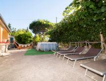 4-Zimmer-Haus 100 m2. Teilweise renoviert im Jahre 2022, komfortabel und rustikal eingerichtet: Wohn-/Esszimmer mit 1 Doppeldiwanbett, Esstisch, Küchenblock und TV (Flachbildschirm). Ausgang zum Garten. 2 grosse Doppelzimmer. Ausgang zum Gartensitzplatz. 1 Zimmer mit 2 Betten und Dusche/Bidet/WC. Kochnische (4 Kochplatten, Backofen, Mikrowelle, Tiefkühler, elektrische Kaffeemaschine). Bad/Bidet/WC. Klimaanlage, Warmluftheizung (extra). Heizung nur verfügbar von 01.11. bis 31.03. Grosse Terrasse, grosser Gartensitzplatz. Terrassenmöbel, Liegestühle. Panoramasicht auf das Meer, die Landschaft und die Ortschaft. Zur Verfügung: Waschmaschine. Internet (Wireless LAN, gratis). Parkplatz Nr. 4 (eingezäunt). Geeignet für Familien. Es werden keine zusätzlichen Gebühren vor Ort fällig, ausgenommen der örtlichen Kurtaxe. 15063044EXT0016 Treten Sie ein und spüren die erfrischende Brise der Klimaanlage. Geeignet zum Grillen. Es gibt ein Pool. Ein privater Pool ist verfügbar. Ein Mikrowellenofen steht zur Verfügung.- Aktivitäten in der Nähe