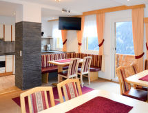 Grosses, schönes Landhaus "Apart Birgit", umgeben von Wiesen. Im Ortsteil Obermühl, 1.3 km vom Zentrum von Kappl, 10 km vom Zentrum von Ischgl, 20 km vom Zentrum von Landeck, sonnige Lage am Hang. Zur Mitbenutzung: schöner, gepflegter Garten mit Rasen und Pflanzen, Teich. Tischtennis, Kinderspielplatz. Im Hause: Skiraum, Zentralheizung, Skischuhtrockner. Brötchenservice. Parkplatz auf dem Grundstück. Einkaufsgeschäft 1.3 km, Lebensmittelgeschäft 1.3 km, Restaurant 1 km, Freibad 9 km, Hallenbad 9 km. Wanderwege ab Haus 100 m, Skilift 3 km, Gondelbahn 3 km, Skibushaltestelle 20 m. Bitte beachten: Bei guter Schneelage Zufahrt mit den Skiern bis zum Haus. Der Besitzer wohnt im selben Haus. Die Sonne scheint und der Berg ruft. Zum Bergwandern ein geeigneter Ort. Bewegung in freier Natur und Wandern in flachen Gebieten ist hier ein bevorzugter Zeitvertreib. Für Snowboarder ein wahrlich ausgezeichnetes Urlaubsziel. Schlittenabfahrten bieten vor Ort jede Menge Rodelspass für mehrere Tage.Interior