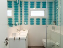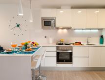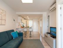 3-Zimmer-Wohnung "Aquarius 9", für 4 Personen, 60 m2, im Erdgeschoss, komfortabel und gemütlich eingerichtet. Wohn-/Esszimmer mit Sat-TV. Rauchen nicht erlaubt. Internet (Wireless LAN [WLAN]). Schlafzimmer mit 1 Doppelbett. Schlafzimmer mit 1 Ausziehbett und 1 Etagenbett. Wohnküche mit 3 - Platten Herd, Mikrowelle, Backofen, Esstisch, Kühlschrank und Tiefkühler. Dusche/WC. Terrasse, Terrassenmöbel. Weitere Ausstattung: Safe, Kinderhochstuhl, Haartrockner, Bügeleisen, Waschmaschine. 2022-T2833 Eine Terrasse ist vorhanden. Dank der Waschmaschine die Sie vorfinden, sind weniger Kleider zum mitschleppen. Das Haus ist auch mit einem Internetanschluss ausgestattet. Um auch mal was schnell selber zuzubereiten, steht ein Mikrowellenofen parat. Es gibt ein Ofen.- Charakteristik des Mietobjekts