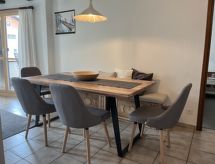 "Apt.13-4", 3-Zimmer-Wohnung 62 m2. Zweckmässig eingerichtet: Wohn-/Esszimmer mit Esstisch und Kabel-TV (Flachbildschirm), Radio. Ausgang zum Balkon. 1 Zimmer mit 2 Betten. 1 Zimmer mit 1 Bett und 1 x 2 Etagenbetten. Küche (2 Kochplatten, Backofen, Geschirrspüler, elektrische Kaffeemaschine, Kapseln für die Kaffeemaschine (Nespresso) extra). Bad/WC. Balkon, Südlage. Zur Verfügung: Internet (Wireless LAN). Garage (extra). Bitte beachten: Nichtraucher-Unterkunft. Wohnung liegt über dem Restaurant. Badewanne im Haus. Bei Fragen und Unklarheiten wenden Sie sich bequem an die Rezeption. Auf Platz befindet sich ein Restaurant. Sie gelangen mit dem Aufzug zur Etage der Wohnung. Es gibt ein Babybett. Informieren Sie sich im über den vorhandenen TV Apparat. Ob lokale Neuigkeiten oder internationale Nachrichten, mit dem Fernsehen sind sie stehts gut informiert. Ein Wäschetrockner ist vorhanden. Es hat ein Ofen.- Ausstattung