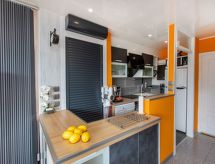 "Naranja", 2-Zimmer-Wohnung 32 m2. Geräumig und hell, zweckmässig und komfortabel eingerichtet: Wohn-/Esszimmer mit 1 Diwanbett (150 cm, Länge 190 cm), Esstisch, Sat-TV und Internationale TV-Sender. Ausgang zur Loggia. 1 Doppelzimmer mit 1 franz. Bett (150 cm, Länge 190 cm). Kochnische (Backofen, Geschirrspüler, 3 Induktionskochplatten, Toaster, Wasserkocher, Mikrowelle, Tiefkühler, elektrische Kaffeemaschine). Dusche/WC. Keine Heizmöglichkeit. Kleiner Balkon 8 m2. Balkonmöbel. Panoramasicht auf das Meer und die Ortschaft. Zur Verfügung: Waschmaschine, Bügeleisen, Haartrockner. Internet (Wireless LAN, gratis). Bitte beachten: geeignet für Familien. Nichtraucher-Unterkunft. TV nur FR, DE. HUTG029720 Sie gelangen mit dem Aufzug zur Etage der Wohnung. Bietet wunderschöne Aussicht aufs Meer. Damit es auch im Sommer angenehm kühl bleibt, verfügt dieses Ferienobjekt über eine Klimaanlage.- Ausstattung