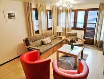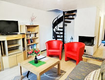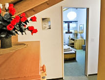 3-Zimmer-Wohnung 78 m2 auf 2 Stockwerken. Wohnzimmer mit offenem Kamin und TV. Offene Küche (Backofen, elektrische Kaffeemaschine, Kapseln für die Kaffeemaschine (Nespresso)). Bad/WC. Obergeschoss: 1 Doppelzimmer. 1 Zimmer mit 2 Betten. Dusche/WC. Balkon. Terrassenmöbel. Schöne Sicht auf die Berge. Zur Verfügung: Internet (Wireless LAN). Bitte beachten: Nichtraucher-Unterkunft. Residenz. Spielangebot für Kinder aller Altersklassen sind auf dem Areal vorhanden. Ein Wäschetrockner ist verfügbar. Es gibt ein Tischtennistisch.- Charakteristik des Mietobjekts