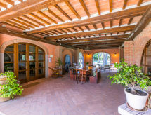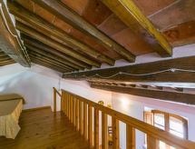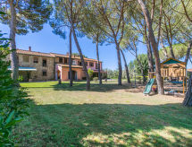 "Arancione", 3-Zimmer-Wohnung 70 m2 im 1. Stock. Geräumig und hell, schön und rustikal eingerichtet: Wohn-/Schlafzimmer mit 1 Doppeldiwanbett (160 cm), Esstisch und Sat-TV. 1 Zimmer mit 1 franz. Bett (150 cm). 1 Zimmer mit 2 Betten (80 cm). Offene Küche (4 Flammen, Mikrowelle). 2 Duschen/Bidet/WC. E-Heizung, Klimaanlage. Obergeschoss: abgeschrägte, offene Galerie mit 2 Betten (80 cm). Gartensitzplatz. Terrassenmöbel. Schöne Sicht auf den Garten. Zur Verfügung: Kinderhochstuhl, Babybett. Bitte beachten: eigener Eingang. Flexibilität bei der Bettenaufteilung: Es stehen mehr Schlafmöglichkeiten zur Verfügung als die maximal zugelassene Personenzahl, diese darf dennoch nicht überschritten werden. Auf dem Spielplatz können sich die Kinder austoben.- Ausstattung