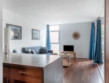 Arcachon: Residenz "Arcachon Marines". Im Ortsteil d'Aiguillon, 500 m vom Meer, 500 m vom Strand. In der Anlage: Fahrstuhl. Einkaufsgeschäft 1 km, Lebensmittelgeschäft, Supermarkt 200 m, Einkaufszentrum 2 km, Restaurant, Bar 100 m, Bäckerei 130 m, Café 100 m, Bahnstation "Arcachon" 1.9 km, Sandstrand "Aiguillon" 500 m, Park "Mauresque" 2.7 km, Hallenbad 50 m. Sporthafen 1 km, Golfplatz (18 Loch) 4.8 km, Radweg 50 m. Nahe gelegene Sehenswürdigkeiten: Aqualand 8.5 km, ArcaJetMarine 250 m, Casino 1.7 km, Marché Municipal 1.5 km, Dune du Pyla 11.6 km, Navette Maritime pour le Cap Ferret 1.7 km. Bekannte Seen in der Umgebung sind gut erreichbar: Lac de la Magdeleine 9.2 km, Lac de Cazaux 17.1 km. Die Schlüsselübergabe findet bei der Agentur Interhome in Arcachon statt, 2 km.Interior