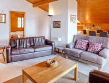 "Armorial II / apt 6", 3-Zimmer-Attikawohnung 90 m2 auf 2 Stockwerken im 3. Stock, Südlage. Komfortabel und gemütlich eingerichtet: abgeschrägtes Wohn-/Esszimmer mit offenem Kamin, Esstisch und TV (Flachbildschirm). Ausgang zum Balkon, Richtung Süden. 1 Zimmer mit 2 Betten (90 cm, Länge 200 cm). Offene Küche (4 Kochplatten, Backofen, Geschirrspüler, Tiefkühler, Racletteofen). Dusche/WC. Obergeschoss: 1 abgeschrägtes Doppelzimmer mit 1 Doppelbett (160 cm, Länge 200 cm), Bad/WC. Balkon 8 m2, Südlage. Sehr schöne Panoramasicht auf die Berge. Garage Nr. 2. Eine Feuerstelle ist vorhanden. Es gibt ein Wäschetrockner. Mit Reinigung. Das Haus ist auch mit einem Ofen ausgestattet.- Aktivitäten in der Nähe
