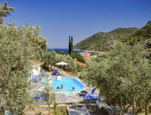 "Artemidon", 3-Zimmer-Wohnung 76 m2. Komfortabel und schön eingerichtet: offenes Wohnzimmer mit offenem Kamin und Sat-TV (Flachbildschirm), CD und DVD. Ausgang zur Terrasse. 1 Zimmer mit 1 Doppelbett. Ausgang zum Balkon. 1 Doppelzimmer mit 2 Betten. Ausgang zum Balkon. Offene Küche (Backofen, 4 Glaskeramikherd Platten, elektrische Kaffeemaschine) mit Esstisch. Bad/WC, Whirlbadewanne. Klimaanlage. Balkon Terrasse teilweise überdacht. Schöne Sicht auf das Meer. Zur Verfügung: Waschmaschine, Safe, Bügeleisen, Haartrockner. Internet (Wireless LAN, gratis). Bitte beachten: Nichtraucher-Haus. 0311Κ10300270301 Residenz. Badewanne im Haus. Der prachtvolle Garten verspricht unvergessliche Ferien. Für Ihr Wohlbefinden geniessen den Whirlpool in der Urlaubszeit. Bietet wunderschöne Aussicht aufs Meer. Es hat eine Feuerstelle. Ein Pool ist verfügbar. Mit Reinigung. Ein DVD Spieler ist vorhanden.- Charakteristik des Mietobjekts