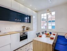 Haus "Artienea", auf 3 Stockwerken. Im Ortsteil du Lac, 550 m vom Meer, 550 m vom Strand. Öffentliche Parkplätze auf der Strasse. Einkaufsgeschäft 900 m, Lebensmittelgeschäft 140 m, Supermarkt 1 km, Einkaufszentrum 3.5 km, Restaurant 120 m, Bar 800 m, Bäckerei 140 m, Café 400 m, Fahrradverleih 950 m, Zentrum zu Fuss in 10 Minuten erreichbar, Bushaltestelle "Paul Gelos" 140 m, Bahnstation "Gare de Saint Jean de Luz" 1.6 km, Sandstrand "Grande Plage" 550 m. Sporthafen 1.5 km, Golfplatz (18 Loch) 3 km, Surfschule 550 m. Nahe gelegene Sehenswürdigkeiten: Parc Duconténia 1 km, Pointe Sainte Barbe 1 km, Maison Louis XIV 1.4 km. Wandergebiete: La Rhune 13 km. Bitte beachten: kein Fahrstuhl vorhanden. Insgesamt stehen in der Region abwechslungsreiche Reitwege zur Auswahl Ideal für gelungene Reiterferien.Interior