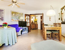 4-Zimmer-Wohnung 102 m2 im 1. Stock. Objekt geeignet für 6 Erwachsene + 1 Kind. Geräumig und hell, schön und gemütlich eingerichtet: Wohn-/Esszimmer mit Digital-TV, Flachbildschirm, Klimaanlage und Warmluftheizung. Ausgang zur Terrasse. 1 Doppelzimmer mit 1 franz. Bett, Bad/WC, Klimaanlage und Warmluftheizung. 1 Doppelzimmer mit 1 franz. Bett, Klimaanlage und Warmluftheizung. 1 Doppelzimmer mit 2 Betten (90 cm), Klimaanlage und Warmluftheizung. Küche (4 Kochplatten, Backofen, Geschirrspüler, Mikrowelle, Tiefkühler, elektrische Kaffeemaschine). Bad/WC. Terrasse. Terrassenmöbel. Sicht auf das Schwimmbad und den Garten. Zur Verfügung: Waschmaschine, Wäschetrockner. Internet (Wireless LAN, gratis). Parkplatz Nr. 26. Geeignet für Familien. CTC-2018046412 Das Haus ist auch mit einem Parkplatz ausgestattet. Ein Wäschetrockner ist verfügbar.- Ausstattung