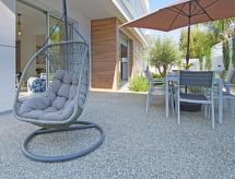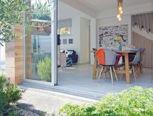4-Zimmer- Haus (freistehend), für 6 Personen, 130 m2, modern eingerichtet. Wohn-/Esszimmer mit Sat-TV und DVD. Rauchen nicht erlaubt. Internet (Wireless LAN [WLAN]). Schlafzimmer mit 1 Doppelbett. Schlafzimmer mit 1 Doppelbett. Schlafzimmer mit 2 Normalbetten. Küche mit Mikrowelle, Backofen, Esstisch, Geschirrspüler, Kühlschrank und Tiefkühler. Bad, Bad/WC, Dusche und Dusche/WC. Balkon, Gartensitzplatz, Terrassenmöbel. Weitere Ausstattung: Safe, Haartrockner, Bügeleisen, Waschmaschine. Ein Balkon ist vorhanden. Es gibt eine Veranda. Ein Geschirrspüler ist verfügbar. Ein DVD Spieler ist vorhanden.- Charakteristik des Mietobjekts