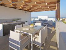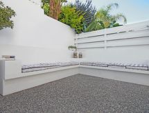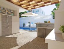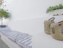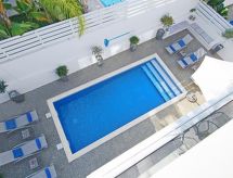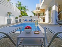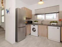 Moderne Villa "lily". Hausausstattung: Klimaanlage, Waschmaschine (zur Alleinbenutzung). Zufahrt & Parkmöglichkeiten: reservierter Parkplatz. Ganzjährig Zufahrt bis zum Haus möglich. Lage: im Ortszentrum von Ayia Triada, am Ortsrand von Protaras. Umgebung des Hauses: Swimming Pool (zur Alleinbenutzung, Länge 3 m x Breite 6 m), Aussendusche (zur Alleinbenutzung). Infrastruktur und Distanzen: Supermarkt 1 km, Restaurant 1 km, Sandstrand 1.3 km.Interior